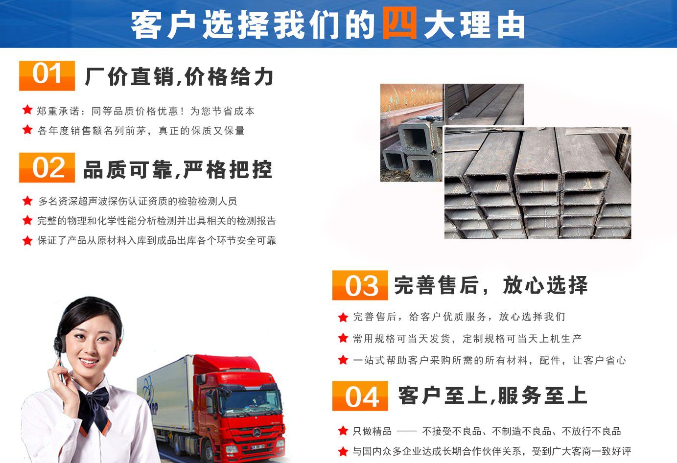 無錫盛灝特鋼有限公司長期銷售Q355B方矩管,鍍鋅方矩管,大口徑方矩管,厚壁方矩管,無縫方矩管等各種方管產品!產品廣泛應用于鋼結構建筑(鋼管混凝土、管樁、管桁架,橋梁、海上作業平臺、港口碼頭建設、電視通訊鐵塔、電力鐵塔等鋼結構管)。壓力管道(石油、天然氣、煤漿等輸送)、機械制輥等領域。 公司自創辦以來,一直堅持“誠信合作,共同發展”的經營理念。 一直以來我們本著“以誠相待,以信為本,互利互惠,共同發展”的長期方針,充分發揮現貨資源優勢為您提供“可靠的產品、過硬的質量、完善的服務”,歡迎廣大新老客戶前來洽談業務。 公司以“至誠至信,雙利雙贏”為根本宗旨,堅持科技興企的發展策略,恪守商規,創新進去,贏得聲譽,贏得了市場,得到了社會各階層的認可。公司以雄厚的實力、可靠的質量、儲存鋼管門類齊全、庫存量大之優勢,本著守法、守信、創新的理念,打造精品,發展鋼管多元化品種,滿足客戶各種需求,以低廉的價格、熱情的服務面向國內外客戶,歡迎鋼管界同仁加盟!我們為客戶提供周到的服務 ! 公司為客戶提供以下服務 服務三保: 保證質量、保證時間、保證數量?! 》兆谥迹?雄厚的實力、優質的產品、低廉的價格、周到的服務。 批零兼營,一支起定。...